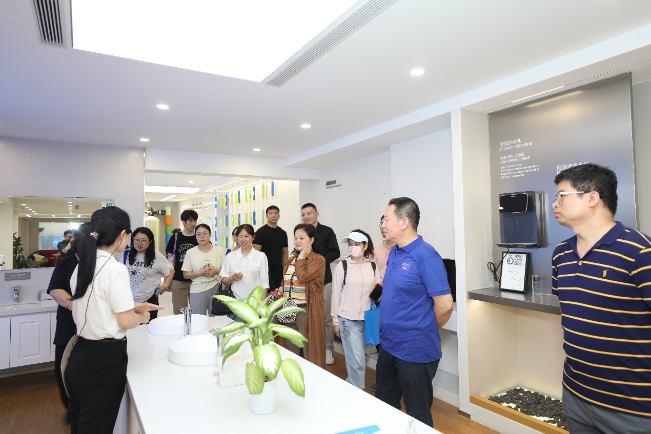 教师们在开能展厅了解了全屋净软水、商用净水、RO反渗透及净热一体机等产品,并体验了软水触感;在生态亲水平台,欣赏自然景观的同时,了解到其作为负排放系统与自净化蓄水池,助力水资源可持续利用;在智能工厂,观摩了从原料入库到仓储物流的全流程自动化与智能化生产。