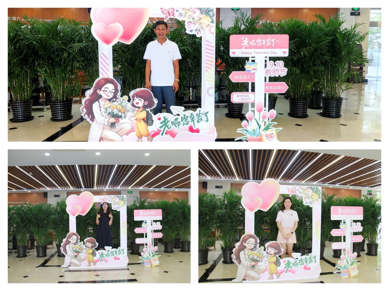 9月10日教师节当天,学院在一楼大厅举办了“最美瞬间,致谢吾师”拍照打卡活动。活动现场气氛热烈,充满了欢声笑语。老师们纷纷在精心布置的拍照背景前留下最美的瞬间,这些照片不仅记录了老师们的风采,更成为了他们珍贵的回忆。通过此次活动,老师们进一步增强了职业的荣誉感和使命感。同时,活动也增进了师生之间、教师之间的感情,营造了尊师重教的良好氛围,为师德师风建设奠定了坚实的情感基础。