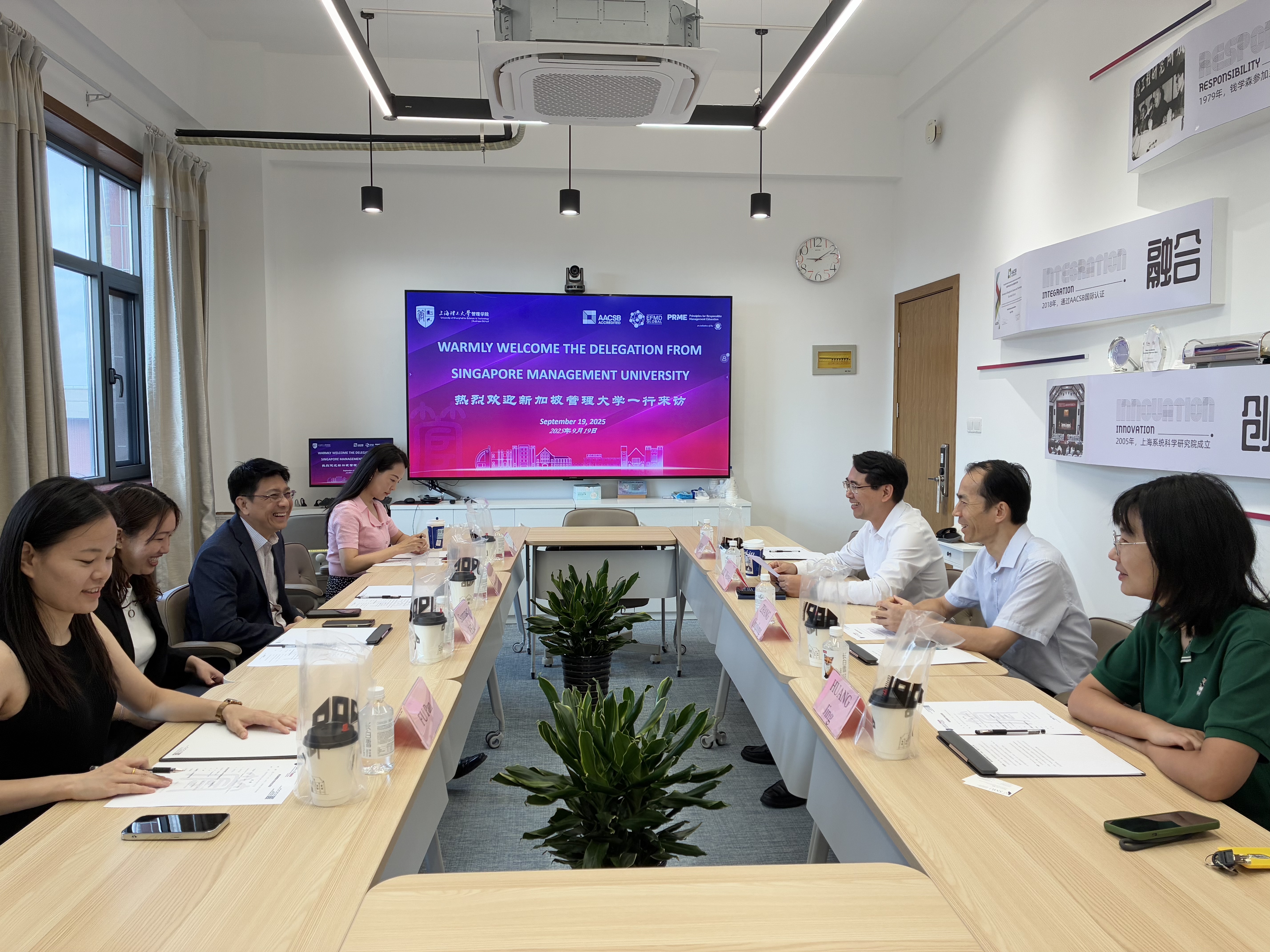 On September 19, Rick Tay, the Director of the Centre for Global Education and Opportunities(GEO) at Singapore Management University(SMU), Summer Lim, a Programme Executive of GEO, Liu Ke, Chairman of the Board of Shiqi Education, and Fu Pan, the General Manager, visited Business School. Liu Weiwei, the Vice Dean of the School, Zhang Qinglong, Director of the Department of Finance and International Economics & Trade, Huang Jing, the Deputy Director of the Department of Accounting and Taxation, and members of the Internationalisation Office participated in the meeting. The meeting was presided over by Liu Weiwei.